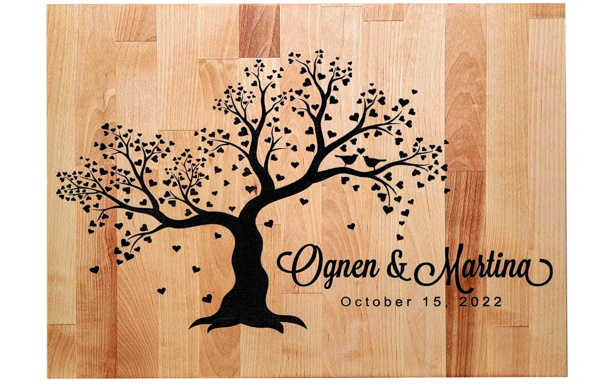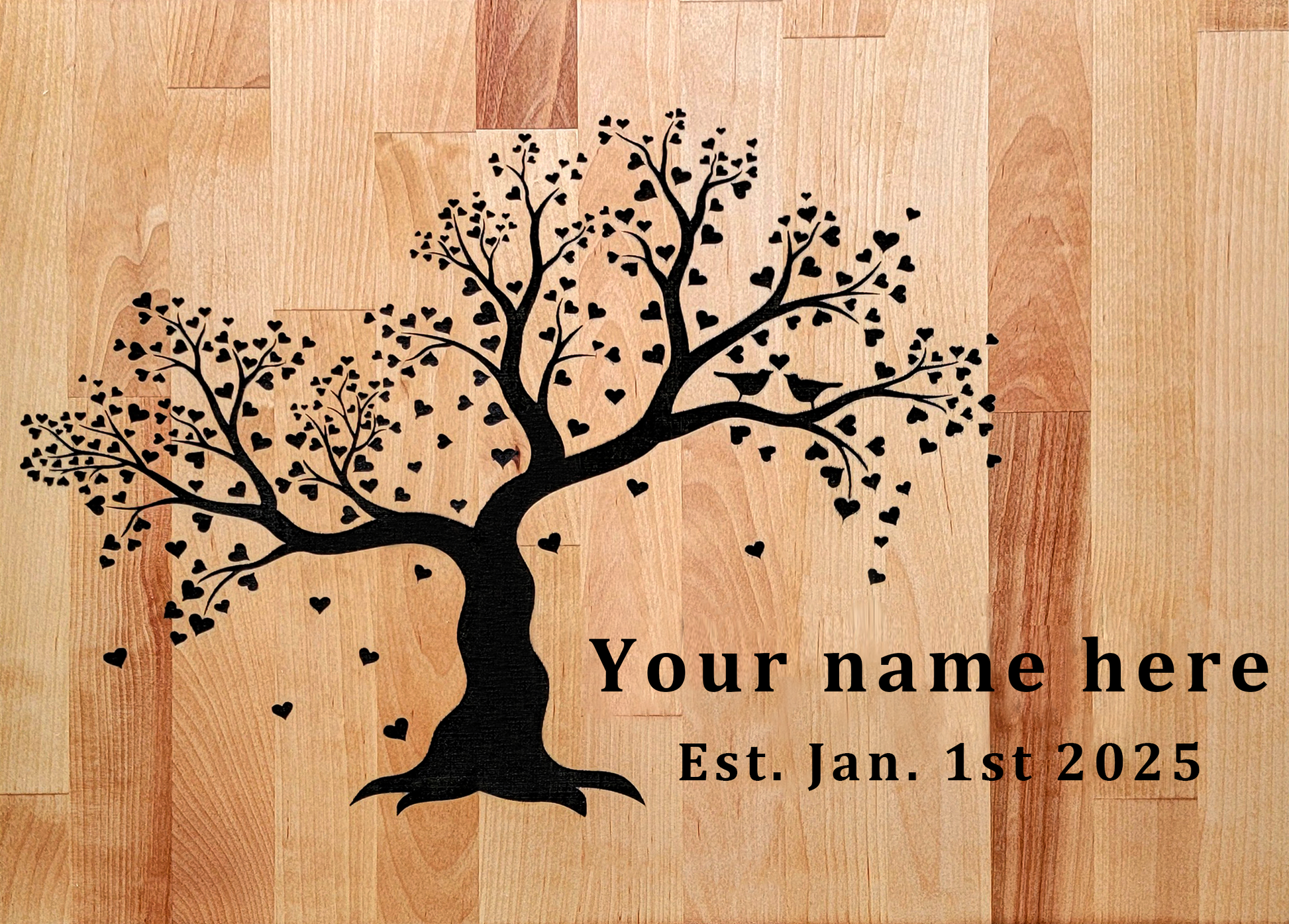 Like all of our boards, this item can be customized with your name and message. The graphic is the tree shown in the product image.